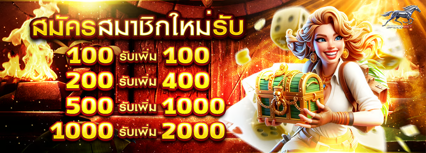 Speedbet ได้จัดโปรโมชั่นต้อนรับสมาชิกใหม่สุดพิเศษ ด้วยโบนัสแรกเข้า 100% ที่ให้คุณได้รับเงินเพิ่มเท่าตัวจากยอดฝากแรกของคุณ ยกตัวอย่างง่าย ๆ ถ้าคุณฝากเงิน 1,000 บาท คุณจะได้รับโบนัสเพิ่มอีก 1,000 บาท รวมเป็นเงินที่สามารถเล่นได้ถึง 2,000 บาทเลยทีเดียว!